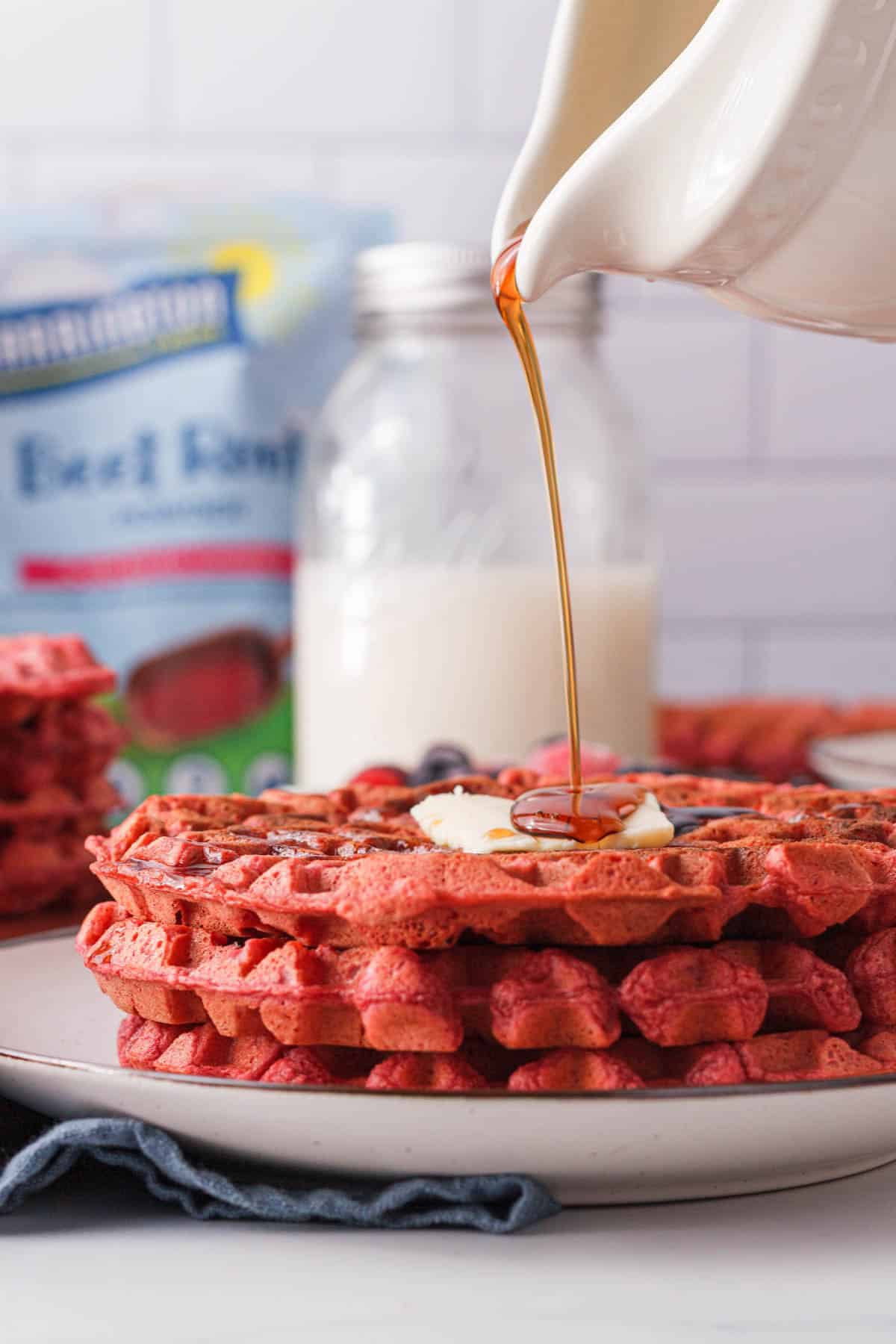 Packed with beet nutrients. Beetroot powder adds some nutrients to your waffles similar to other hidden veggie recipes.